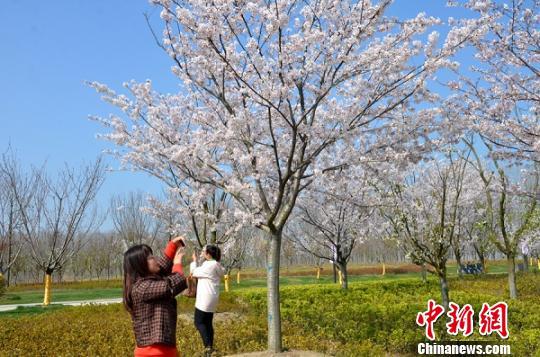 阳春三月,江苏盐城大洋湾40000多株樱花缤纷绽放。 于从文 摄