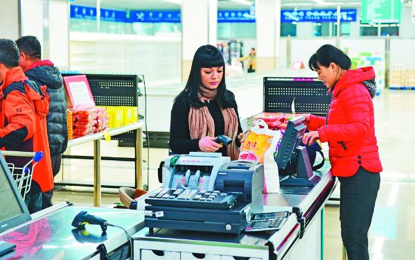 俄罗斯籍收银员在边民互贸中心工作。本报记者陈宝林摄