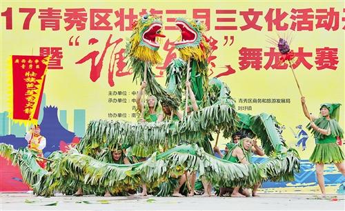 “壮观的舞龙比赛是第一次看,感觉非常精彩,特别是这种具有民族特色的节目能体现出我们广西的文化底蕴。”特意带着家人从广州赶来南宁过“壮族三月三”的李先生说,他从网上看到南宁市青秀区有这个活动,就特意坐动车过来观看表演。在现场接受记者采访的市民中,有许多游客跟李先生一样,从外地来南宁感受“三月三”的氛围,亲眼看到舞龙大赛,让不少观众深感震撼。