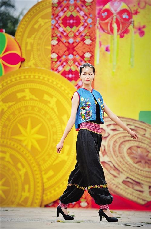 当天的活动现场,活动主办方还邀请模特佳丽带来了壮族服饰秀,演绎壮族服饰的别样魅力。壮族的壮布和壮锦闻名遐迩,以图案精美和色彩艳丽著称,还有风格别致的蜡染也为人们所称道。服饰秀体现了古典与时尚碰撞的视觉美学,从而让市民、游客感知壮族文化的博大精深。