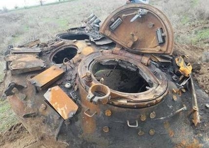 撞击导致坦克天线与其他部位接触电塔上的高压电线,造成坦克内部发生自燃,紧接着引起弹药爆炸。图为炮塔已经被拖车拖离事发区域。