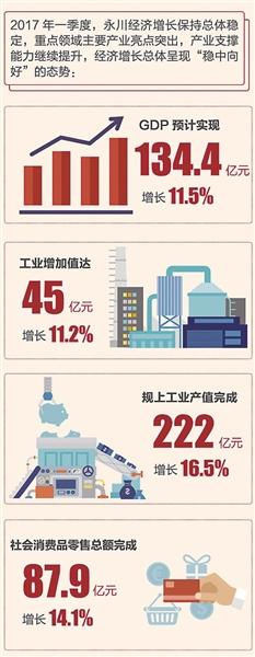 本报讯 (记者 熊远树 陈翔)去年底,永川区第十四次党代会明确了永川发展“一二三四“总体思路。今年一季度,永川经济增长保持总体稳定,重点领域主要产业亮点突出,产业支撑能力继续提升,经济增长总体呈现“稳中向好“的态势。