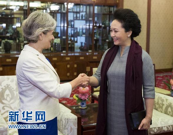 彭丽媛会见联合国教科文组织总干事博科娃。新华社记者黄敬文 摄