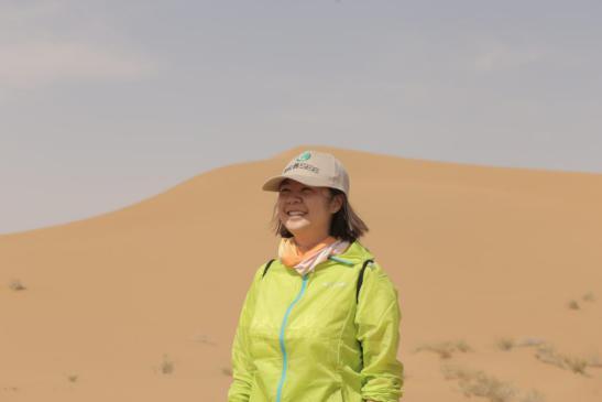 4月28日,在研究生同窗陈琳琳(阿拉善SEE会员)的撺掇下,杨梅飞抵内蒙,来到阿拉善荒漠地区,参与阿拉善SEE组织的“重走晓光路,同种晓光林”公益活动。