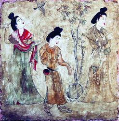 唐朝墓壁画,反映当时的女性生活情景。(资料图)