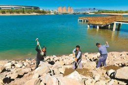 然而,4年前,由于七里河公园人工湖缺少水源,单纯依靠雨季河流的自然来水更新湖水,使得湖水在旱季常常成为一潭“死水”;生活污水、工业污水大量排入七里河河道,使得水质进一步恶化;再加上河底淤泥沉积,杂草丛生,塑料袋等白色垃圾漂浮在湖面上,使湖内的生态环境陷入恶性循环。作为市区重要景观、市民休闲重要场所的七里河公园人工湖成了损害城市形象、影响周边居民生产生活的一块心病。