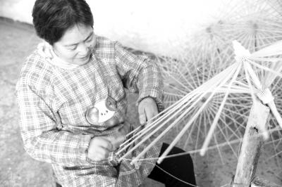 甲路村油纸伞手工艺人正在绕伞边,整个油纸伞制作技艺有上百道工序。本报记者 冯蕾摄/光明图片