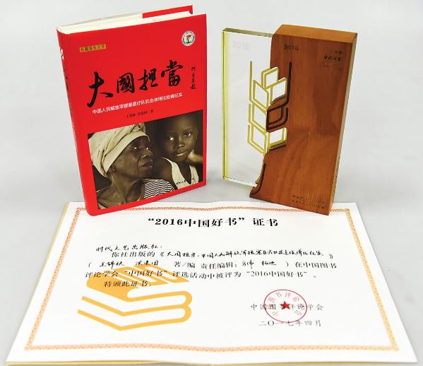 “世界读书日”当天,由中共中央宣传部、国家新闻出版广电总局、中央电视台和中国图书评论学会联合推出的“2016年度中国好书颁奖盛典”在中央电视台一套综合频道黄金时段播出,吉林出版集团时代文艺出版社出版的长篇报告文学《大国担当——中国人民解放军援塞医疗队抗击埃博拉疫情纪实》(以下简称《大国担当》)获评“2016年度中国好书”。