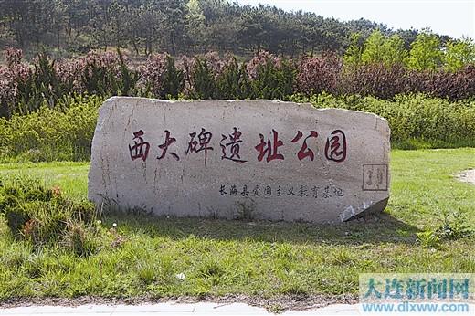 西大碑遗址公园位于大长山岛镇南海西大山,是日本侵华战争的罪证之一。现为大连市首批爱国主义教育基地。