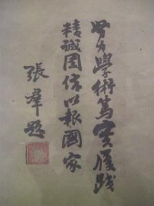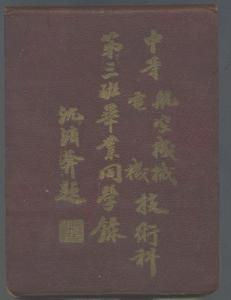 1944年电技2班毕业生留影,照片上有小诗一首:“三载芸窗恍若烟,依依杨柳恨绵绵,一杯苦酒浇离绪,刮目相看待来年”。