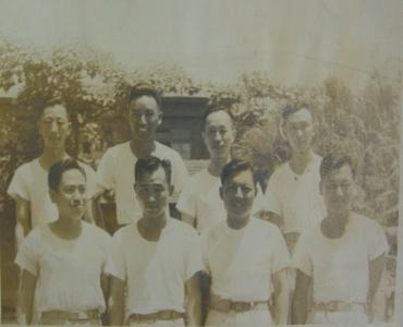 1943年该校电技1班毕业生在多宝寺校园与教师合影(台湾校友捐赠)。