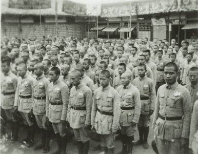 从照片中,我们看到一脸严肃的学生们统一剃光头或留短发,穿军服,打绑腿,一副军人打扮——这便是抗战时期学生生活的真实写照。