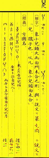 “童”字在甲骨文中写作(甲骨文,字形见版面),下面与(甲骨文,字形见版面)相似,表示人,但是有罪之男人,更准确地说,是有罪的奴。早期把奴称为“童”,与本义表示有罪女人的“妾”字相对应,“童”和“妾”均涉性别和人身属性,单独一个字与年龄并没有关系,只有与其他字组合才与年龄有关。如“童牙”、“童昏”、“童孩”、“童年”、“童弱”、“童子”、“童孙”、“童龀”、“童羁”等,均指低龄未成年人,“童”单字表示年幼之人是后来引申出来的。