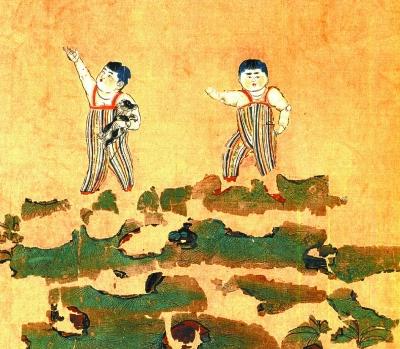 新疆吐鲁番市阿斯塔那187号唐墓中出土的绢画上的儿童。