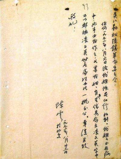 由政府接济生活有困难的革命家属,是很正常的事情,但陈云不因此而违背他的原则,而且终其一生始终坚持。20年后的1972年8月,陈云亲自写信给吴江县松陵镇革命委员会,代姐姐陈星做主,将其财产“一概交公”。