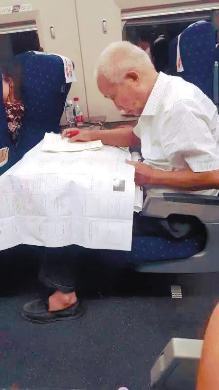 这两天,一位其貌不扬的老先生在高铁二等座上笔耕不辍的照片刷屏网络,感动无数网友。