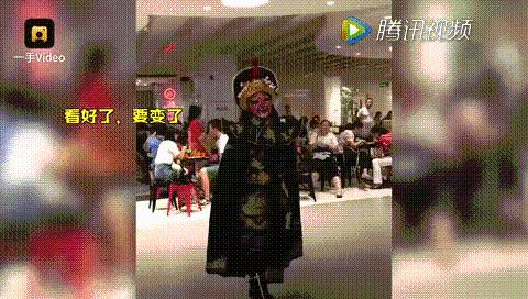 通过视频可以看到,河北保定一商场内的某火锅店,一位穿着戏服的演员正在表演川剧变脸,一开始,他快速的变脸引来顾客阵阵掌声,但在连续变了三张脸后开始出现失误,“变脸”脸谱“斜挂”在脸上,露出下一张脸谱,他急忙捂脸“纠正”,可仍然“无济于事”,最终尴尬捂脸离场。
