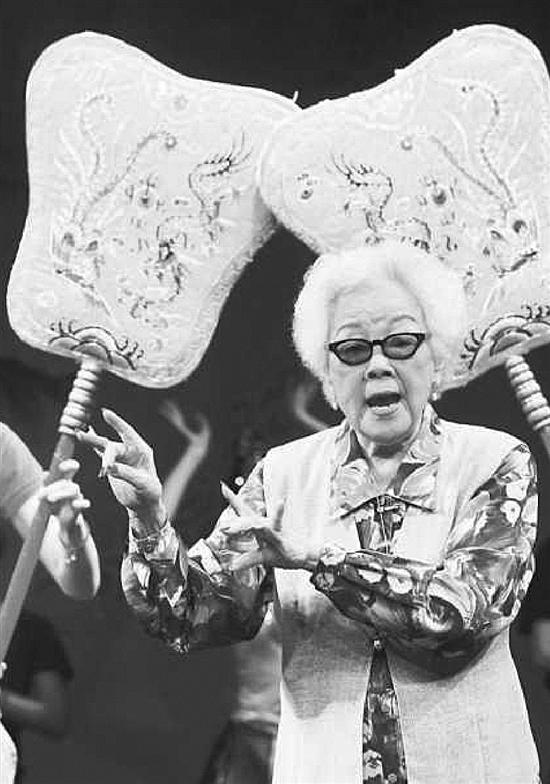 穿着妙善公主戏服出场演《观音得道》的她,名叫戴绮霞,今年100岁,在台湾被称为“京剧皇后”。她有个著名的弟子关肃霜,已去世25年。而她百岁还登台,可能是目前健在的艺龄最高的京剧旦行演员。更重要的是,她的祖籍,是杭州。