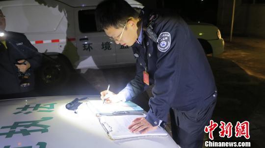 浙江环保执法人员深夜突击检查。 浙江省环保厅供图