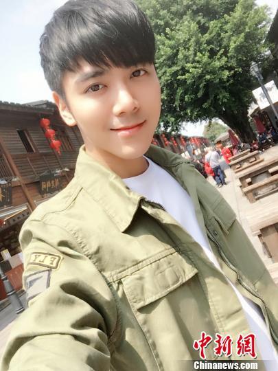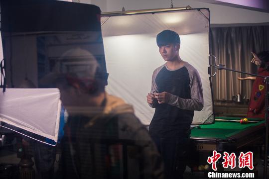 台湾青年艺人温哲轩正在工作。 陈丹妮 摄