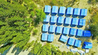 新疆精河县6.6级地震发生后,新疆维吾尔自治区启动三级应急响应,成立抗震救灾指挥部。图为8月9日在新疆精河县托里镇乌兰旦达盖村航拍的受灾群众安置点。新华社发