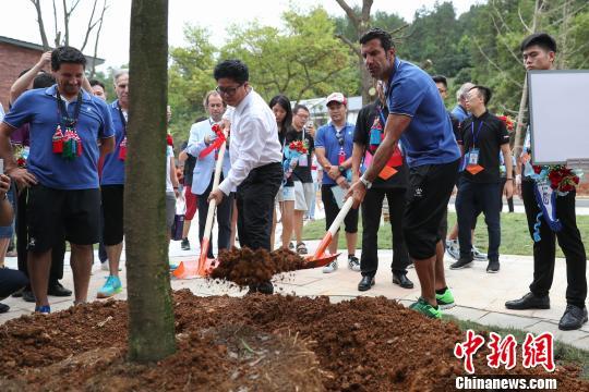 图为葡萄牙球星路易斯·菲戈在都匀足球小镇栽下友谊树。 贺俊怡 摄