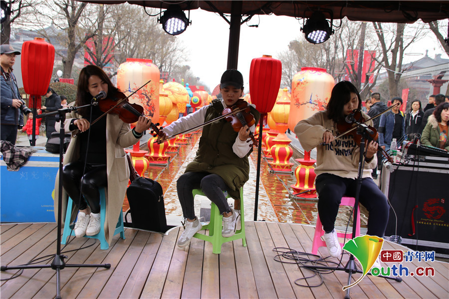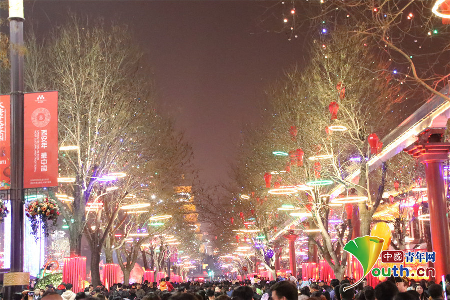 中国青年网西安3月3日电(代红玉 记者 高琦)3月2日,恰逢元宵节,在大唐不夜城“现代唐人街”新春文化庙会现场,由共青团西安市委组织的青年文艺表演,不仅向全球游客展示出了中国佳节盛会的独有风采,也为点亮“西安年·最中国”的盛会主题增添了青春能量。