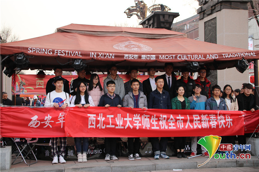 由西北工业大学19名学生组成的表演团队在活动现场赢得了阵阵喝彩。歌剧表演者李嘉文告诉记者:“这里给青年人提供了才华、个性展现的舞台,也让更多的艺术形式展现在了大众面前,尤其是歌剧,大众平时接触较少,希望我爱的东西能带给大家新年的快乐。”