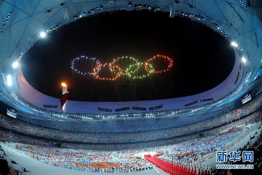 从1952年新中国首次参加夏季奥运会,到2015年北京携手张家口获得2022年冬奥会举办权,新中国体育事业不断发展,实现了从参加到举办夏季奥运会、申办冬季奥运会的全面突破,走过辉煌历程。2008年8月24日,第29届夏季奥运会闭幕式在国家体育场——“鸟巢”举行。这是闭幕式上燃放的五环烟花。 新华社记者马占成摄