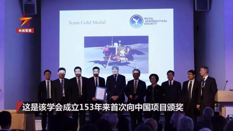 25日,英国皇家航空学会2019年度颁奖典礼在英国伦敦举行。嫦娥四号任务团队获得本年度全球唯一的团队金奖,该奖也是英国皇家航空学会成立153年来首次向中国项目颁发的奖项。