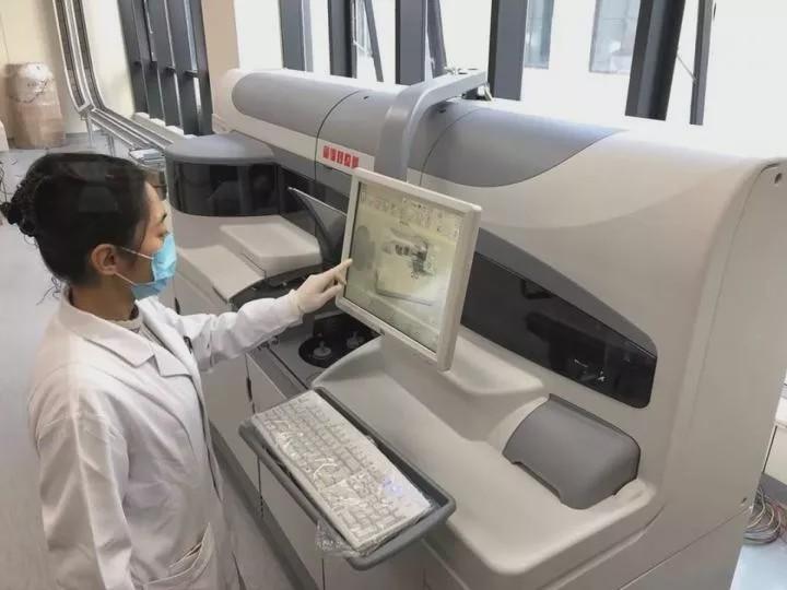 在检验科,两名医务人员正在操作检验设备。除临床医生外,检验检疫工作者成为距离病毒最近的人群。