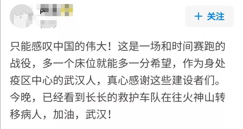 ? “非典”给中国留下了经验, 中国构建了一套应对类似疫情爆发的综合应急体制机制。火神山医院的架构不是说你对着图纸构思一晚上就能搞出来的。综合上述几点,不吹不黑,我觉得这件事只有中国能做到。总之,愿一切都好吧。