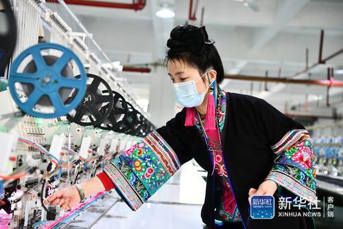 3月30日,在从江县贯洞镇,贵州省孔明苗侗民族绣品服务有限公司的工人在扶贫车间调试生产民族绣品的机器。新华社记者 杨文斌 摄