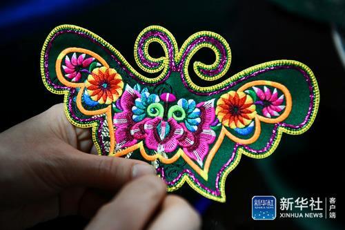 3月30日,在从江县贯洞镇,贵州省孔明苗侗民族绣品服务有限公司的工人在扶贫车间进行手工刺绣。新华社记者 杨文斌 摄