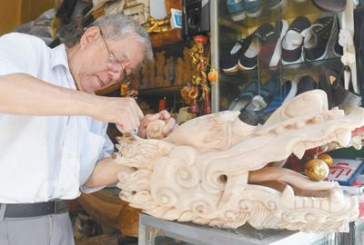 对照破损的龙头,结合船的实际情况,左文康精选樟木,一锤锤,一凿凿,新的龙头、龙颈、龙尾在他手中出现。