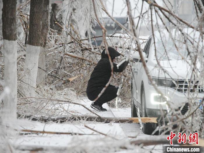 本轮冻雨、暴雪天气,造成大量树木折枝,不少车辆被砸坏。 刘栋 摄