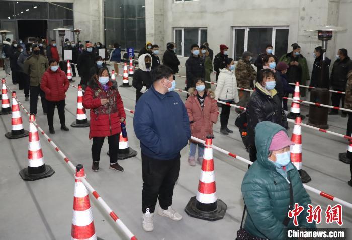 图为河北省固安县居民排队等候进行核酸检测。 门丛硕 摄