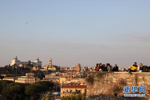 3月4日,人们在意大利罗马的橙园欣赏风景。