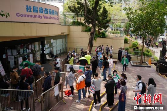 3月27日上午,众多市民在位于香港中央图书馆的社区疫苗接种中心排队等候接种科兴新冠疫苗。截至26日晚,已有43.5万香港市民接种新冠疫苗。