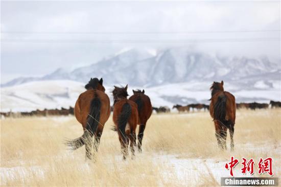 祁连山现"雪中骏马图"!亚洲最大马场披银装