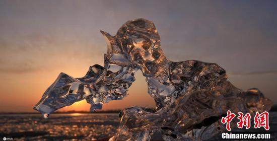 4月5日,黑龙江省哈尔滨市,春暖,松花江道外江段开始跑冰排,夕阳下,岸边冰块呈现出迷人的金色、黄色与金黄色。一块块大大小小的冰排顺流而下,从哈齐高铁特大桥与滨洲桥到松浦大桥,在相机的慢速快门中,江面上拉出一道道长长的冰线,气势汹涌。 图片来源:ICphoto