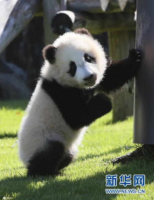 大熊猫宝宝"枫浜"晒日光浴