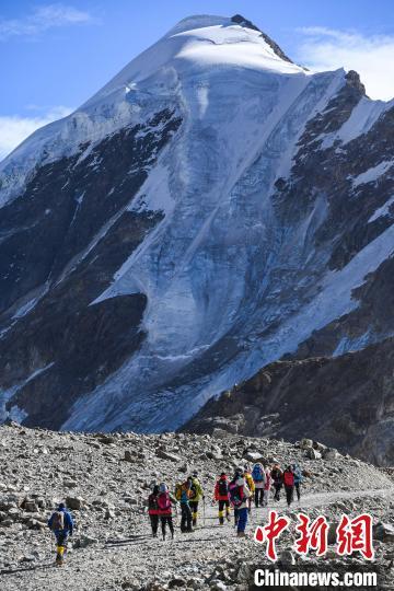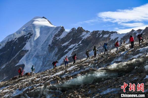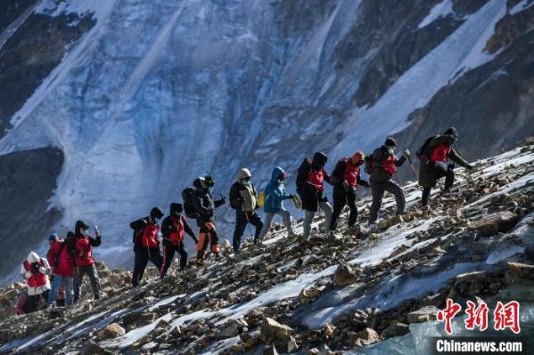 图为冰雪运动爱好者在官方组织下在西藏当雄县羊八井镇攀登洛堆峰。(资料图) 何蓬磊 摄