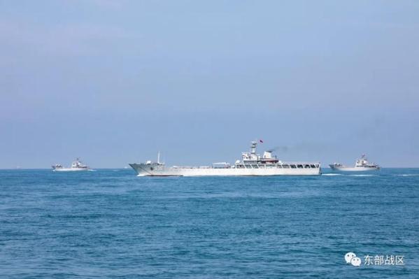 近日,东部战区海军某登陆舰大队黄岗山舰、普陀山舰组成舰艇编队赴某海域开展实战化条件下编队防御、火炮射击、登陆全过程等科目训练。