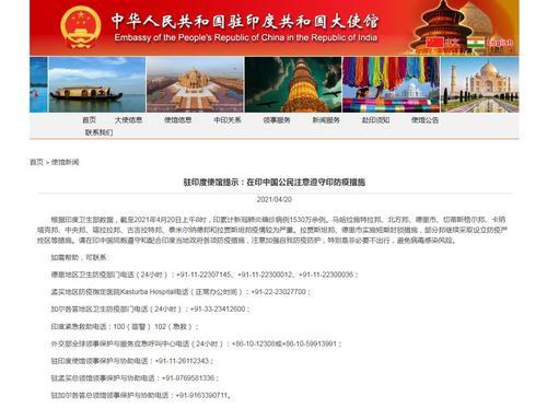 驻印度使馆领事保护与协助电话:+91-11-26112343;