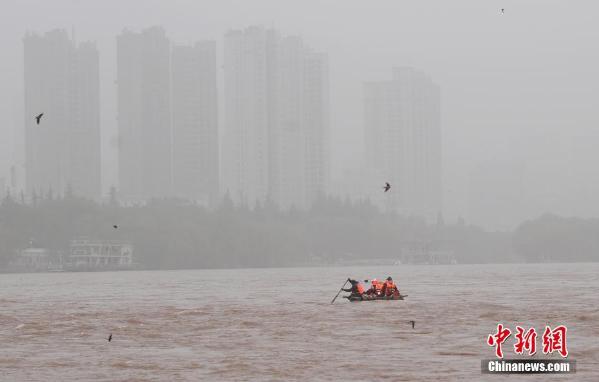 4月26日,兰州出现沙尘天气,游客在风沙中乘坐羊皮筏子游览黄河。 中新社记者 杨艳敏 摄