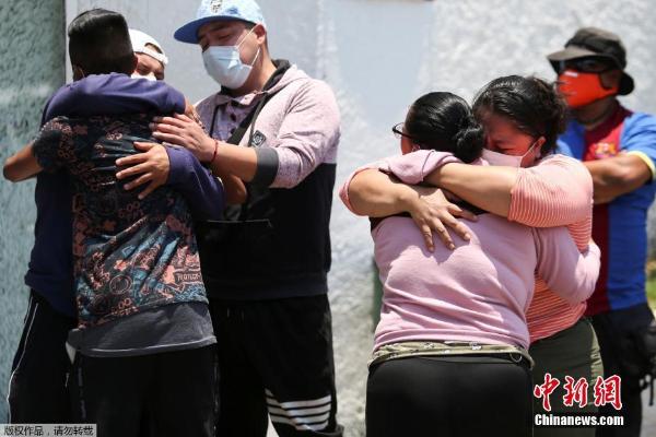 当地时间5月4日,墨西哥首都墨西哥城桥梁坍塌事故救援持续进行。据报道,墨西哥首都墨西哥城一座桥梁坍塌,已造成至少23人死亡、65人住院。此次事故地点位于墨西哥城12号轨道交通线奥利沃斯站附近。至少2节地铁车厢悬吊在坍塌的桥面上,立交桥下的汽车被砸毁。图为遇难者的亲属相拥而泣。