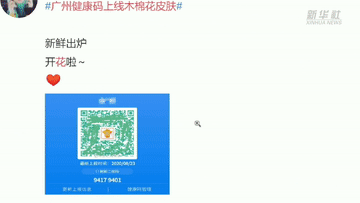 据悉,目前广州的健康码也进行了全新升级。已接种新冠疫苗的人群,绿码中间都会出现一朵闪闪发光的小木棉花。赶快一起来解锁属于你的健康码“新皮肤”吧!