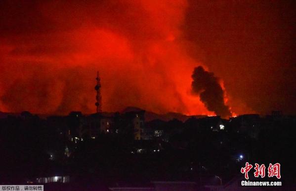 当地时间5月22日,位于刚果民主共和国的尼拉贡戈火山喷发,烟雾和火焰“染红”天空。