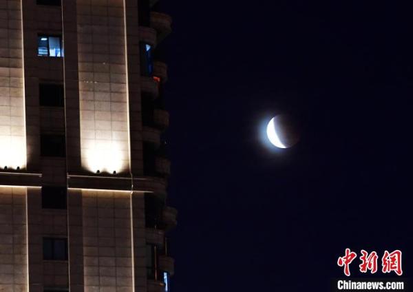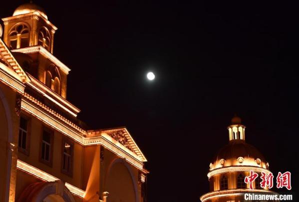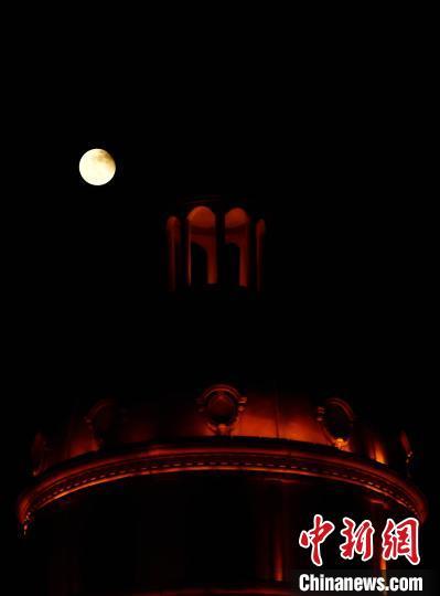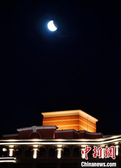 图为5月26日晚,在福建省福州市拍摄的“超级月亮+月全食”天文景象(生光至复圆阶段)。 张斌 摄